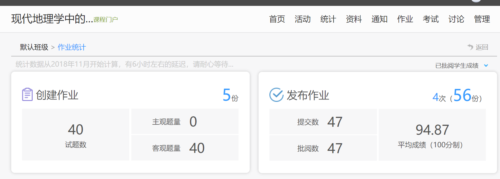 图4 计量地理学学生作业完成情况