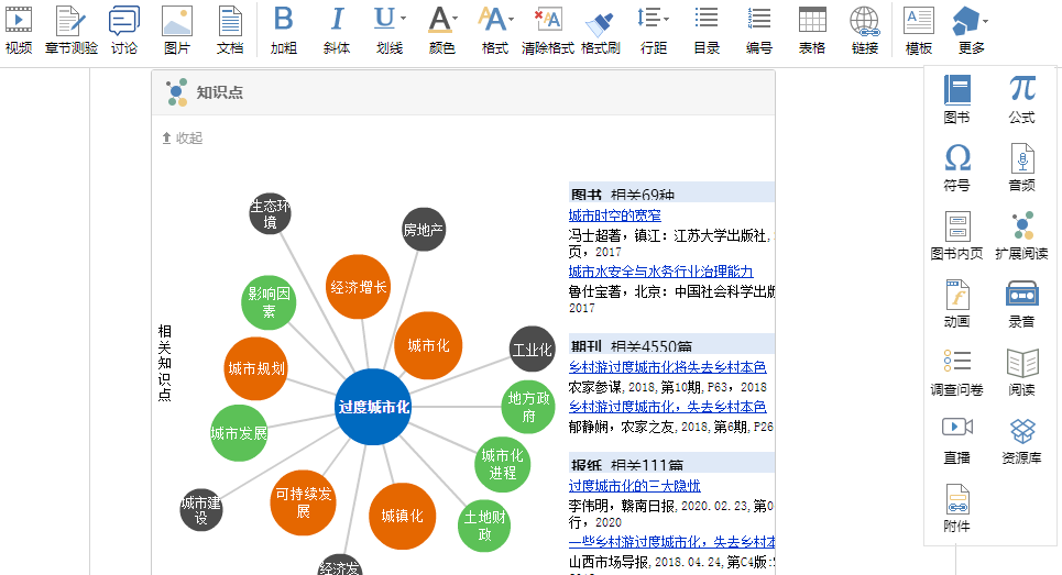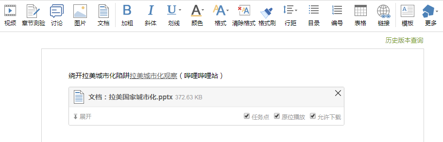 利用超星插入图书内页功能将需要的文献导入,设置为任务点进行阅读。本科需要阅读的文献主要是拉美过度城市化的形成过程。