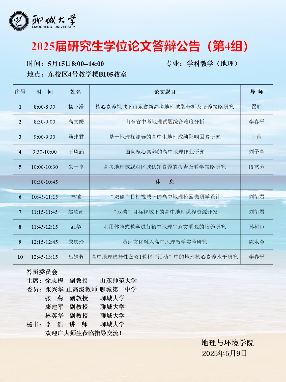 2025届研究生学位论文答辩公告(第四组)