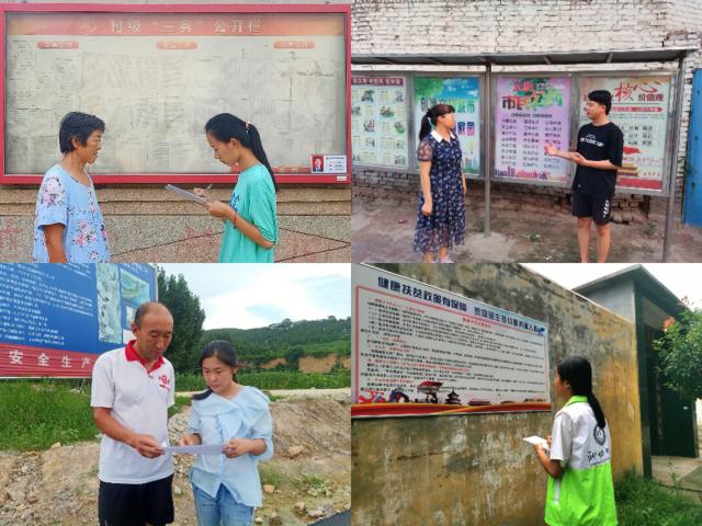 打赢脱贫攻坚战,助力乡村振兴,实现家家户户奔小康。志愿者在充分了解脱贫攻坚相关政策后,就“乡村振兴战略在农村的实现程度”“部分村干部对脱贫攻坚的重视程度”等问题展开了调查,并针对脱贫问题进行了宣传。在考察走访过程中,志愿者以不同的方式展开考察,部分志愿者利用提取村务公告栏信息、访问村民等方式对宣传力度问题加以考量。调查考量出真知,志愿者走访村民街道,以当地的卫生状况及房屋质量为基础进行测评。通过系列考察,志愿者得出结论,部分地区脱贫攻坚力度达到预期,并收到了一定成效,只有少数地区脱贫意识不足,这亦是部分地区贫富分化的原因之一。
