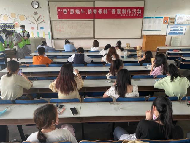 为丰富学生的精神文化生活,传播弘扬中华优秀传统文化,提升学生的文化自信,让学生一起度过一个浓情难忘的端午节,6月4日,球王会体育绿野协会于东校区4#C303举办了“香’思端午,情寄佩帏”端午节香囊制作活动。