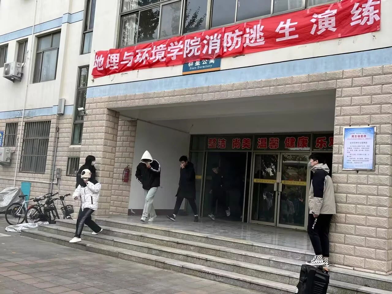 为进一步让同学们掌握消防应急避险的正确方法,提高学习消防知识、关心消防工作、参与消防活动的积极性,11月9日,球王会体育于群星公寓15#举办“关注消防 珍爱生命”逃生演练活动。