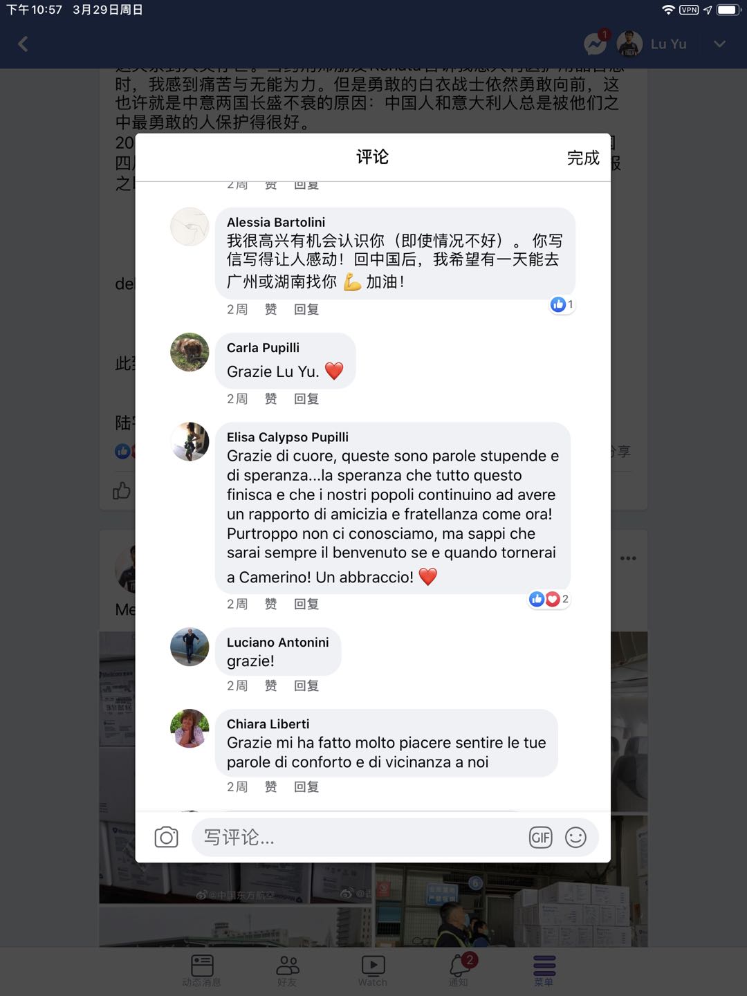 陆宇谈到,同样让他备受感动的还有Alessia的中文评论。Alessia是信件的翻译者,Alessia翻译得很地道,尤其是对新冠病毒称谓的翻译“Coivd-19”,是对抹黑中国抗“疫”的直接回击。