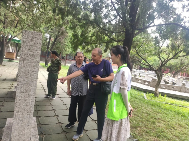 志愿者以泰山的形成过程为根本,充分利用专业知识,深入理解掌握沉积岩、变质岩、火成岩等相关知识点,并对各类岩石的基本特征及构造进行了分析,实现了专业知识与实践的完美结合。在学习参观结束后,志愿者结合自身理解,图文并茂地向游客宣讲如何辨别各类岩石,提醒感兴趣的游客在登山过程中观察学习。同时,志愿者整理了详细的泰山文化知识点,涵盖泰山起源、帝王封禅、书法石刻、文人登山等内容,为泰山游客提供志愿讲解服务,以增强游客对泰山文化的理解能力以及欣赏感受。此外,针对即将登山的游客,志愿者从泰山的概况、登山路线、门票车票购买,到各种常见的问题,详细地进行了介绍,以便为游客带来更加全面的服务。
