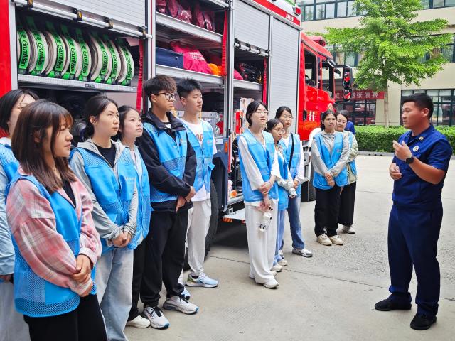 为培养同学们的消防安全意识和自我保护能力,学习消防知识和技能,7月25日,球王会体育2022级2班团支部和2023级8班团支部于聊城市消防救援支队举办了“走进火焰蓝 感悟责任重”社会实践活动,此次活动由聊城市消防救援支队的杨班长带领志愿者们参观。