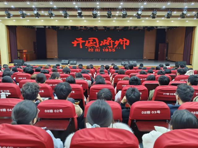 赓续红色血脉,汲取奋进力量。观影前,刘杰对该影片做了简短介绍,并希望同学们能够了解开国十大元帅背后的故事,认识他们的丰功伟绩。影片以1955年9月底全军第一次实施授衔授勋这个重要时间节点为主线,同时将中国人民解放军1052名功勋将帅的故事穿插其中,展示了中国人民解放军自八一南昌起义之后的历史事件,浓缩展示了我军自建军后的光辉历史。