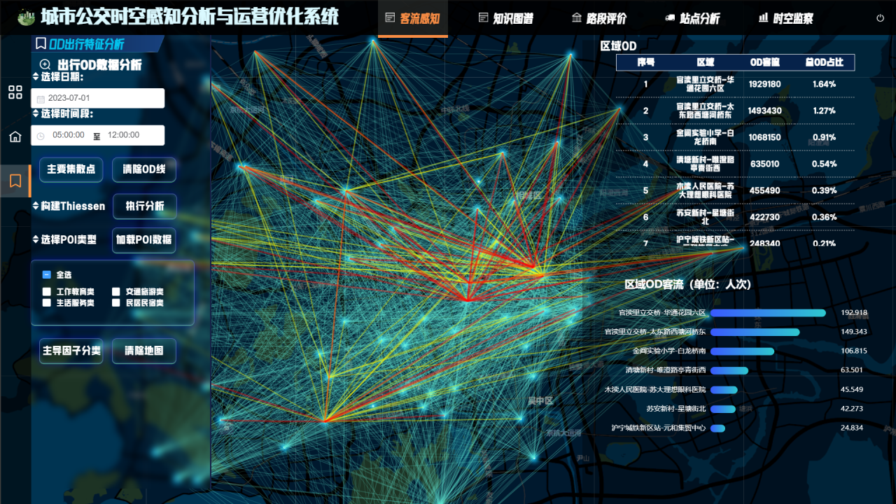 作品《“立体融合,都市智行”—城市公交时空感知分析及运行优化系统 》以公交运营数据为基础,融合多源数据,针对当下公交系统出现的痛点问题,结合乘客需求,设计了Web端、移动端、微信小程序三部分,优化了传统公交的运营模式。并利用图引擎neo4j构建出行知识图谱,直观地展示出行场景中人、车、站点之间的关联关系,将分析的目光更加关注到社会中的微观个体尺度,挖掘客流的多维关联,实现了数据增值。