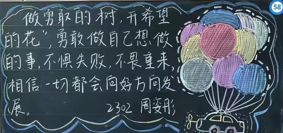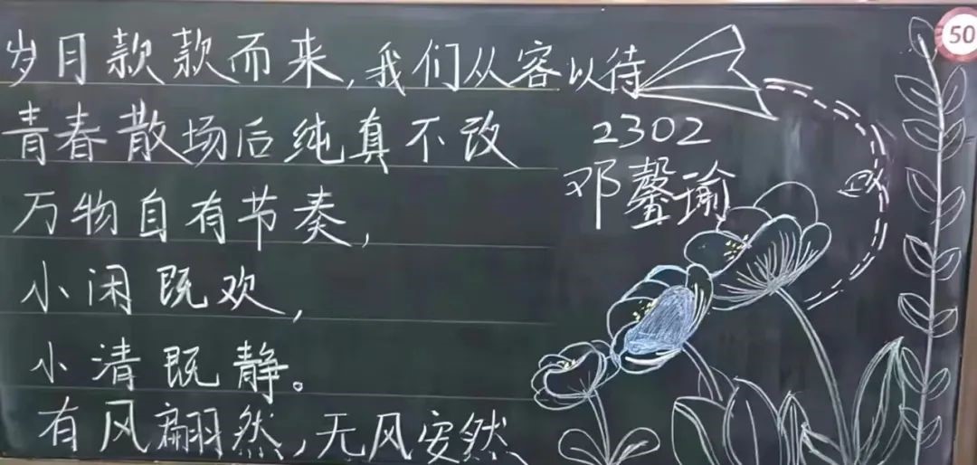 赏心悦目的板报展现了同学们对传统文化的热爱和尊重,启发同学们对生活、自然和人生哲理的思考,传递了同学们的昂扬向上精神风貌,营造了积极向上的校园文化氛围。让我们携手努力,共同为打造更加丰富多彩的校园文化贡献力量!