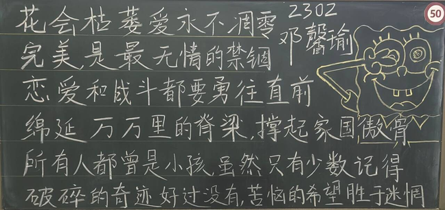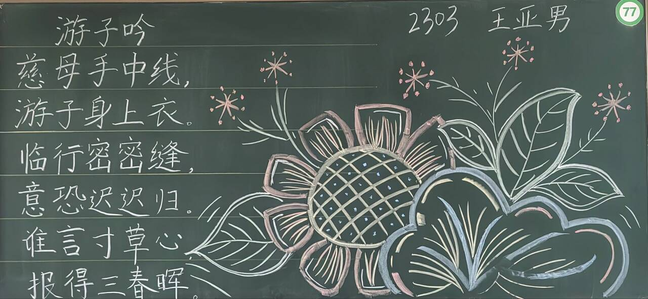 赏心悦目的板报展现了同学们对传统文化的热爱和尊重,启发同学们对生活、自然和人生哲理的思考,传递了同学们的昂扬向上精神风貌,营造了积极向上的校园文化氛围。让我们携手努力,共同为打造更加丰富多彩的校园文化贡献力量!