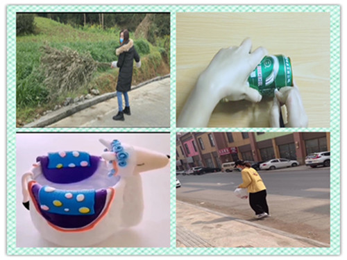 植环境常绿,护家园迎春。本次活动从环保角度出发,以当前生活环境中所存在的草木损害、垃圾乱丢及草坪践踏等现象为背景向同学们发起绿化环境倡议。同学们积极响应,踊跃参与,充分利用创新思维,通过在小区或公园等公共场所打扫卫生、收集生活垃圾并对其分类及制作手工作品进行废物利用等方式践行绿化环境、美化家园的理念。张琛在进行废物手工制作时巧妙性地使用太空泥及废弃卷纸筒,经过创意构思,为同学们展示了一个生动形象的“绵羊”艺术品,在积极响应绿化环境号召的同时充分展现了自身的制作才能,为绿化环保行动增添了良多趣味。