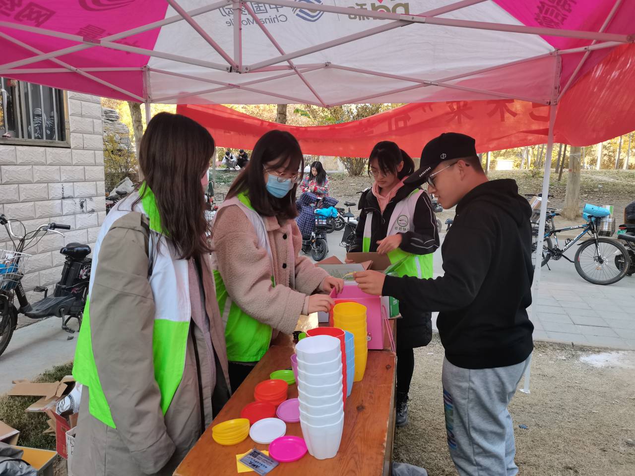 以废物换植物,共建美好家园。工作人员向取快递的同学介绍此次活动的过程,邀请同学们参与活动,用刀具帮助参加此次活动的同学拆开快递盒,并热情地向同学们讲解此次环保行动的目的。捐赠快递盒的同学可根据个人喜好挑选绿植种子、花盆等,由工作人员向同学们介绍种植过程中的注意事项。活动过程中,同学们表现十分踊跃,在获得种子的喜悦之余也深切感受到了环保带给我们的重要意义。其中一位参与者讲到:“作为一名大学生,节约资源,保护地球是我们的责任,地球是我们的家园,保护地球就是保护我们自己。”为贯彻落实循环利用、环保先行的理念,工作人员将快递盒制作成精美的卫生巾互助盒,放置于各楼层卫生间,向有需要的同学提供帮助。