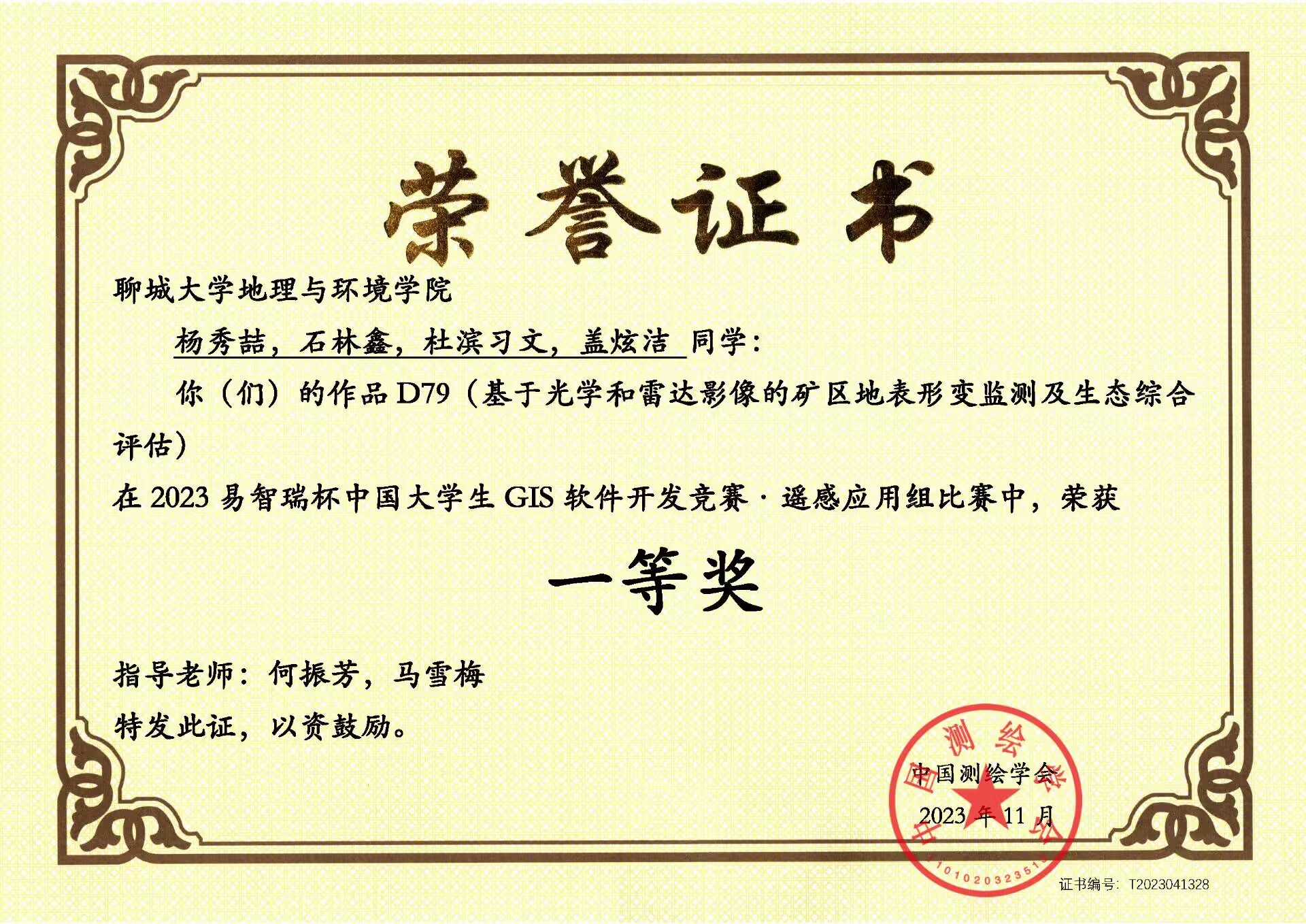 热烈祝贺我院学子荣获2023Esri杯大学生GIS软件开发竞赛遥感应用组一等奖