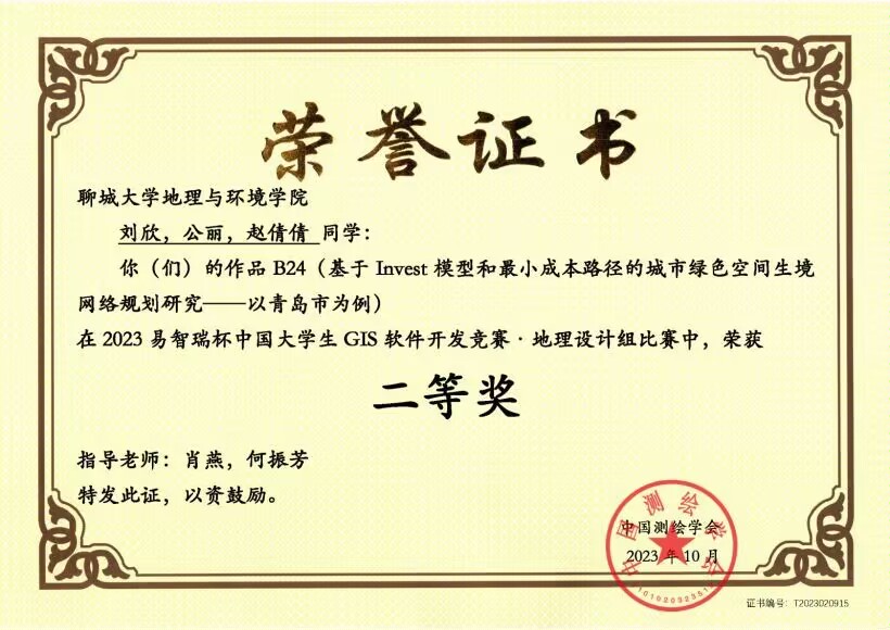 热烈祝贺我院学子荣获2023Esri杯大学生GIS软件开发竞赛地理设计组二等奖