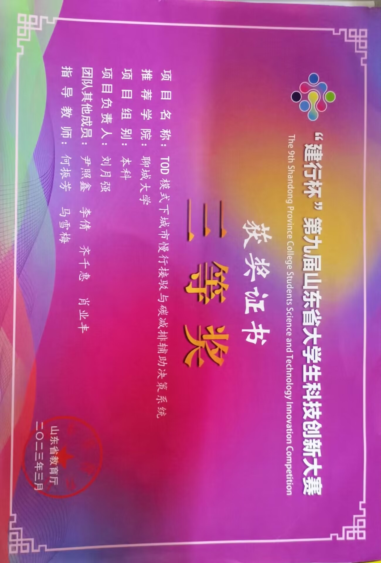 热烈祝贺球王会体育齐千惠、尹照鑫、李倩、肖业丰同学获得建行杯第九届山东省大学生科技创新赛三等奖。此奖项的获得充分体现了齐千惠、尹照鑫、李倩、肖业丰同学的勤奋努力、艰苦奋斗,同时也为我校争得了荣誉。在此,向齐千惠、尹照鑫、李倩、肖业丰同学表示真挚的祝贺。