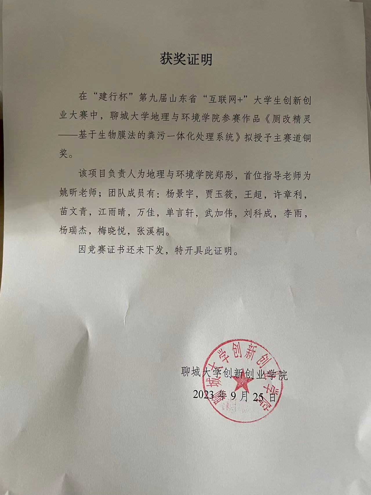 热烈祝贺我院学子荣获第九届山东省“互联网+”大学生创新创业大赛获主赛道铜奖