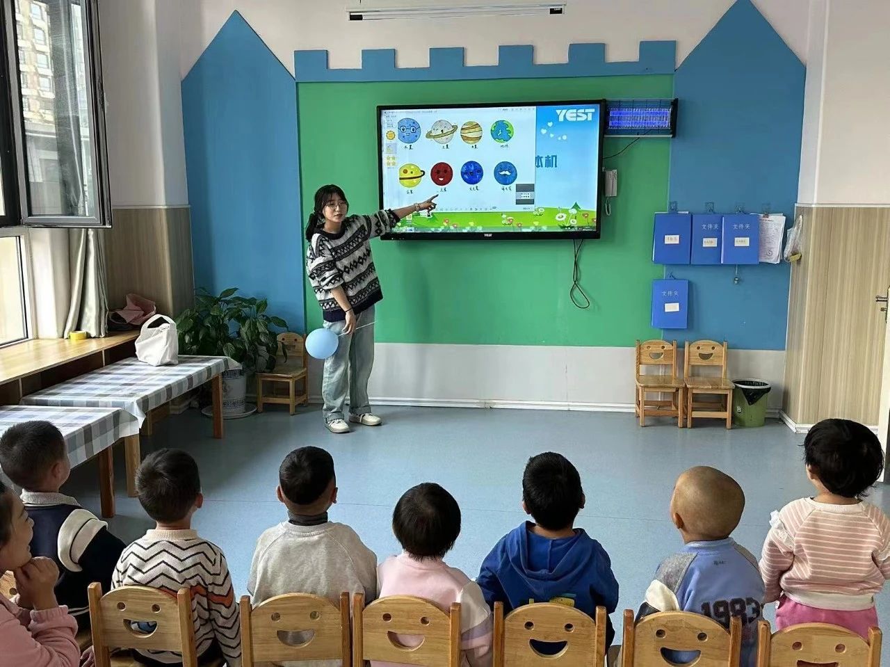面对幼儿园一个个激动兴奋的小朋友,同学们传播知识、体验未来教师职业的激动心情也早已按捺不住,在幼儿园老师的配合下,地科二班团支部开展了画地球、橡皮泥捏地球等活动,通过这些活动传播了与地球相关的知识,使小朋友们进一步认识了解地球。地科三班团支部则带领幼儿园中班的小朋友做了“星球萝卜蹲”、手指游戏等益智活动,在轻松愉快的游戏中传授八大行星的运转等知识。