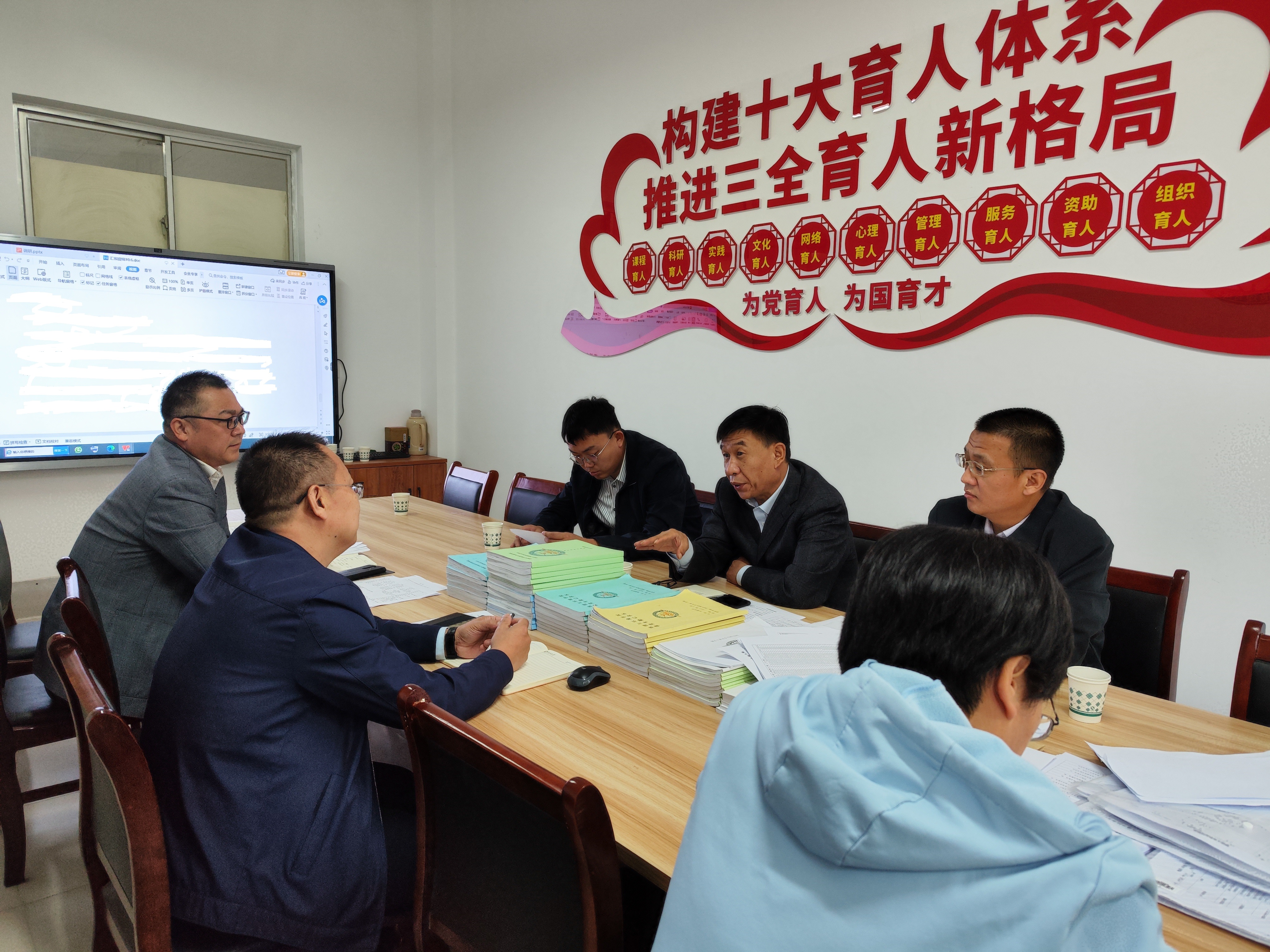 赵明吉一行现场考察了学院团委书记(辅导员)办公室、球王会体育生态文明驿站,与学院领导、辅导员进行了深入交流。