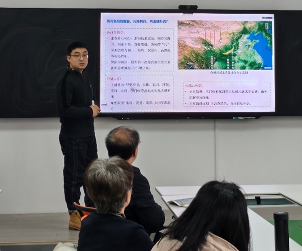 会议报告内容丰富,涉及地质地貌、生态水文、土壤养分评价、土壤碳排放与碳固存、水体和气体污染、基于遥感和机器学习等的应用研究。刘加珍教授的报告着重分享了个人野外研究的实验布设经验,力求年轻工作者们少走弯路。于泉洲老师利用新型遥感手段来识别湖泊菹草群落,技术新颖,思路创新,此外还与大家分享了硕博求学的心路历程,引起师生共鸣。王甲荣老师则讲解利用水文模型量化了气候和下垫面要素变化对雅鲁藏布江流域径流及其组分的影响机理和贡献程度。陈彬和蒋立伟老师分别针对地貌演化和地球构造做了报告成果分享,郑珂老师则基于深度学习方法对高光谱图像进行高分辨率的重建和分类,为进行精准的地物识别提供新的技术手段。硕士研究生的报告也异彩纷呈,逻辑清晰,内容充实,分析讨论深入,展现了较高的学术水平和素养。会议过程中讨论热烈,老师们对学生报告点评精准和建议合理,参会者受益匪浅。