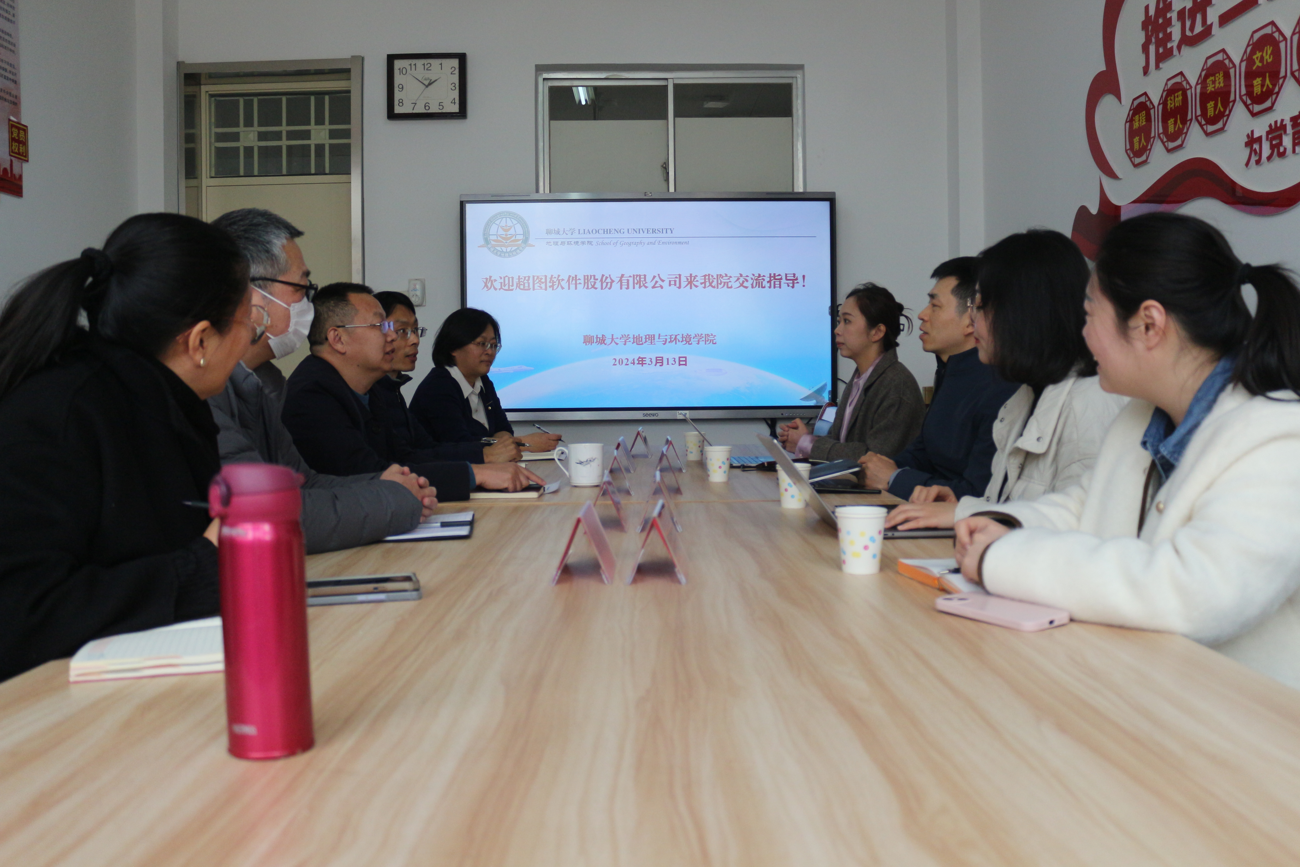 3月13日,北京超图软件股份有限公司集团总工程师兼平台产品线总裁、研究院副院长胡中南和超图软件山东大区总经理李蓉蓉来我院交流工作,学院党委书记井岗,党委副书记、副院长张福善,副院长汤庆新热情接待来访人员。参与交流的还有超图软件山东大区教育行业负责人王璐、超图软件教育生态团队负责人朱迎宁和学院地理信息科学专业副教授马雪梅、辅导员张秀荣。