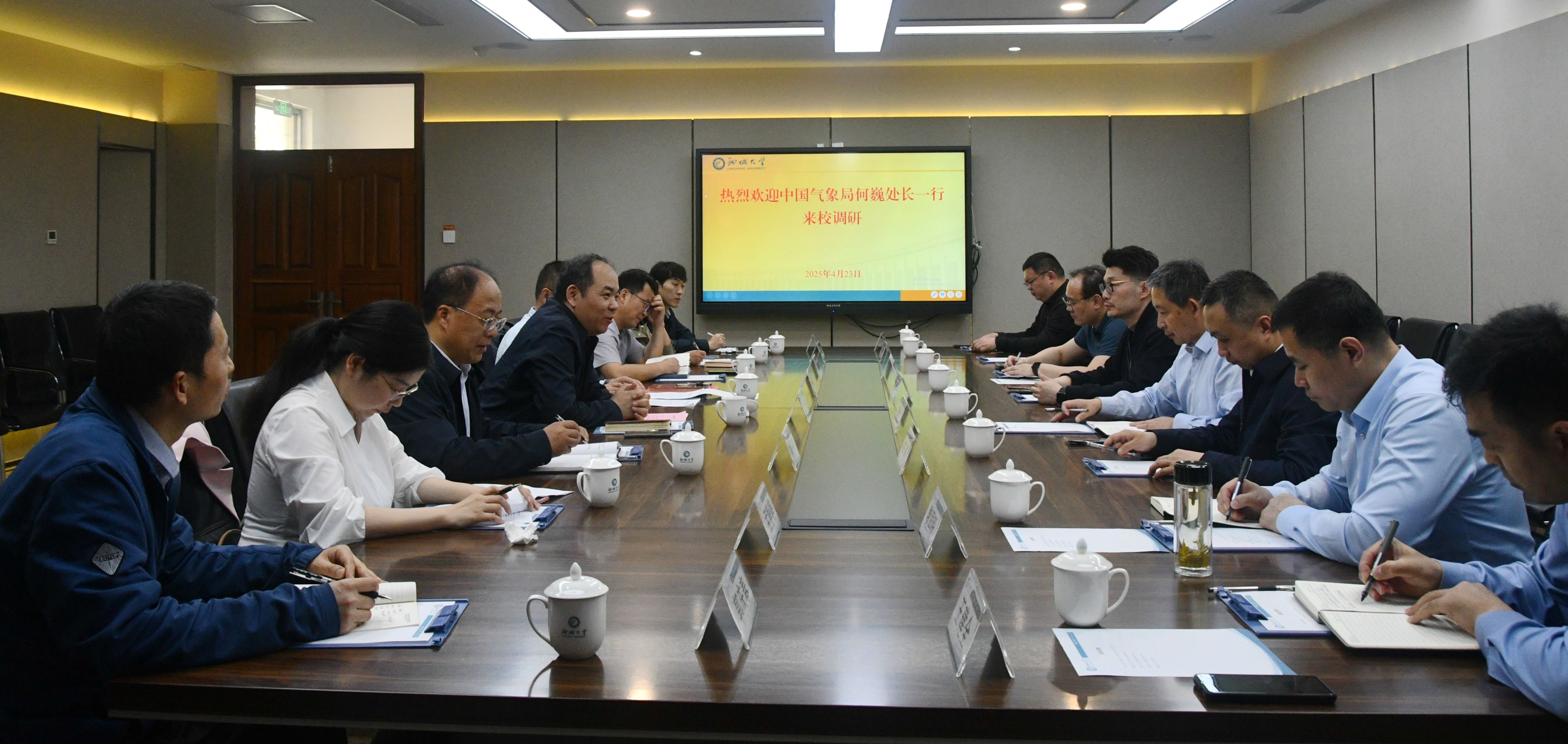 中国气象局气象中心全球气象室、华风集团全媒体运营中心、山东省气象局有关人员,聊城市气象局、我校球王会体育、太平洋岛国研究中心主要负责人围绕双方合作事宜开展具体交流讨论。