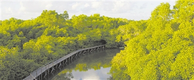 综合“蓝碳倡议”、可持续发展旅游国际组织与美国国家海洋和大气管理局介绍,当前,红树林、潮汐沼泽和海草床等滨海湿地是最受关注的蓝碳生态系统。这些生态系统“捕捉”并在植物和下面的沉积物中隔离并储存了大量的蓝碳,起到了碳汇的作用。