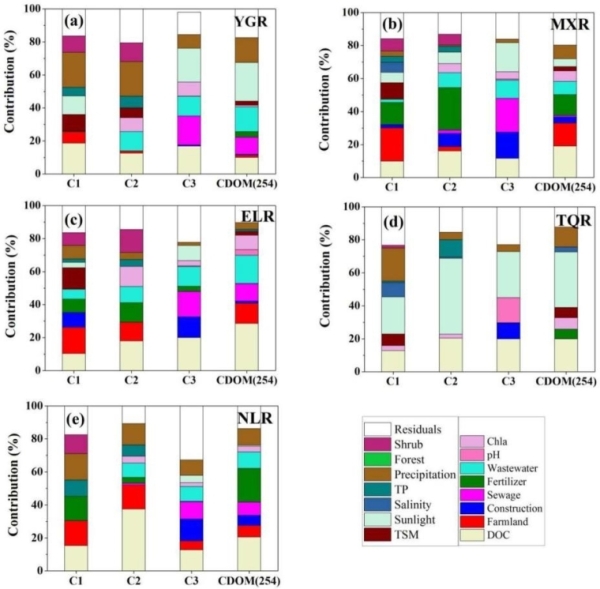 目前,三维荧光技术被广泛应用到国内外各类水体中解析DOM的组分和来源特征,但对于大尺度不同地区和不同类型湖泊CDOM组分和来源的影响因素解析仍然鲜少报道。中国科学院东北地理与农业生态研究所水环境遥感学科组研究人员等通过对2015年至2019年间实测的256个湖泊样品进行CDOM吸收和荧光组分特征分类,结合FT-ICR MS技术对DOM的分子组分结构以及相关人类活动和自然因素进行解析,发现类腐殖质含量相对较高的湖泊比类蛋白物质含量较多的湖泊CDOM吸收系数和荧光组分强度显著增高。此外,自然因素和人类活动因素对CDOM组分的影响程度也具有较大差异。该研究为深入探究湖泊DOM的组分结构和水环境碳循环规律提供了理论支撑。