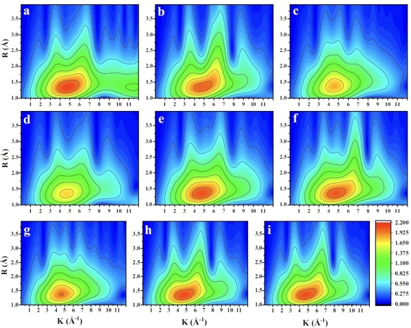 图1.Cu-SSZ-13的原位XAFS图谱。a.O2/He,b.NO吸附,c.NH3吸附,d.NO+ NH3吸附,e.NO+NH3吸附后O2氧化,f.NO+ NH3吸附后NO2氧化,g.标准SCR反应条件下,h.快速SCR反应条件,i.NO2-SCR反应条件。
