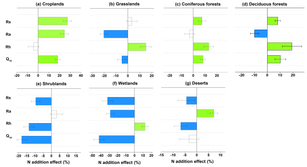 全球氮添加对不同生态系统土壤呼吸及其温度敏感性的影响