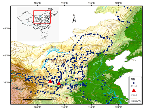 图1 中国北方表土蜗牛组合样品采集点和黄土蜗牛化石样品点分布