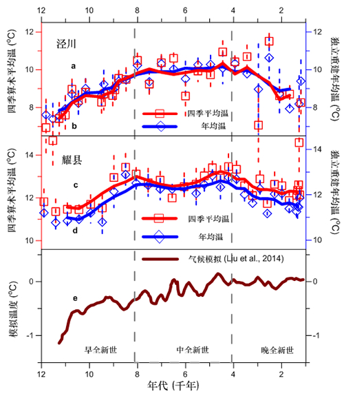 过去2万年,全球气候经历了从寒冷盛冰期向温暖全新世的重大转变,是农业起源、人类文明起源发展的关键时期。然而,1万年来全新世气候是如何变化的,是否存在中全新世(约8千-4千年)大暖期,是近年来科学界高度关注的重要问题。回答这个问题,古气候学界通常存在两种途径:地质记录重建和古气候模拟。然而,目前这两种途径得出的结论具有重大分歧,被称为“全新世温度谜题”。争论的焦点,是古气候模拟专家质疑地质记录重建的中全新世温度主要受到夏季温度的支配,不能反映真实的年均温度。因此,如何利用地质记录重建年均温度,寻找对季节性气候敏感的量化指标,评估不同季节温度对年均温度的贡献,是破解这个谜题的关键点。