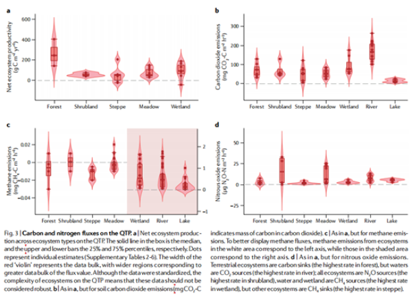 图2.青藏高原不同生态系统的碳氮通量