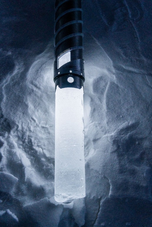 图1. 新提取出来的羌塘冰川冰芯。摄影:极地未来。