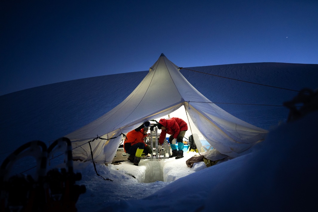 图3. 科考队在青藏高原羌塘冰川钻取冰芯。摄影:极地未来。