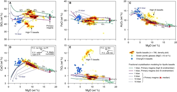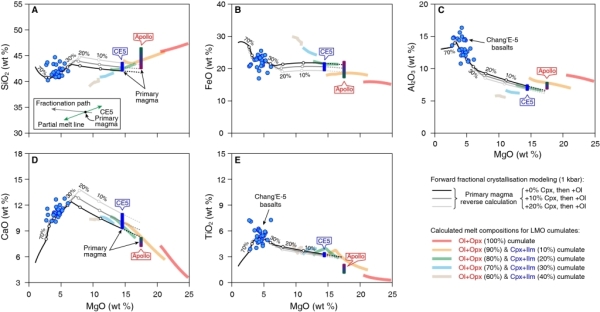 图1.阿波罗低钛玄武岩初始岩浆分离结晶模拟结果