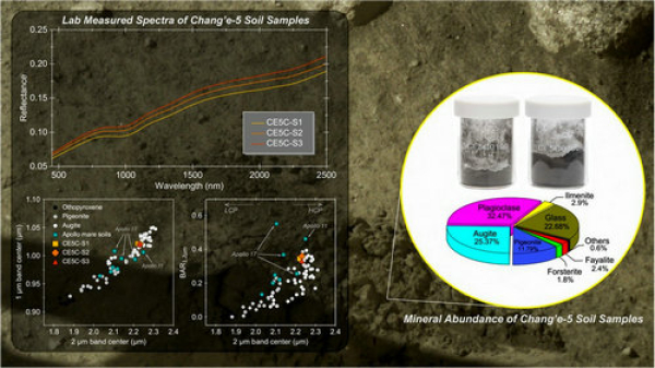 中国科学院国家天文台研究员李春来、刘建军带领团队,结合嫦娥五号月球样品的实验室分析结果和遥感探测数据,解答了此前对月球晚期玄武岩遥感光谱解译的疑惑,纠正了月球晚期玄武岩独特遥感光谱特征的物质成分解译结果。