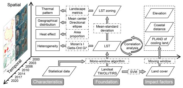 作为海洋和海岸带生态系统的重要组成部分,海岛是人类活动的重要场所和特殊单元。与内陆城市相比,有居民海岛四周环水,边界分明,独特的地理环境使其能够避免相邻区域的热效应干扰,为居住区热环境特征的探究提供了理想的独立区域。由于岛屿生态系统对各种自然和人为因素的反应敏感,其地表温度影响因子分析也更具代表性。然而目前相关研究案例不足,遥感卫星获取地表温度的瞬时性特征所带来的时空同步性差的问题,也对不同城市化水平有居民海岛的地表热效应强度和影响因素的认识造成一定的困难。
