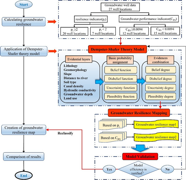 相关成果以“Identifying groundwater resilience zones in an arid inland basin using GIS-based Dempster-Shafer theory”为题发表在Journal of Hydrology: Regional Studies。论文第一作者为新疆生地所硕士王跃辉,通讯作者为新疆生地所副研究员施枫芝。该研究得到中国科学院西部学者项目资助。