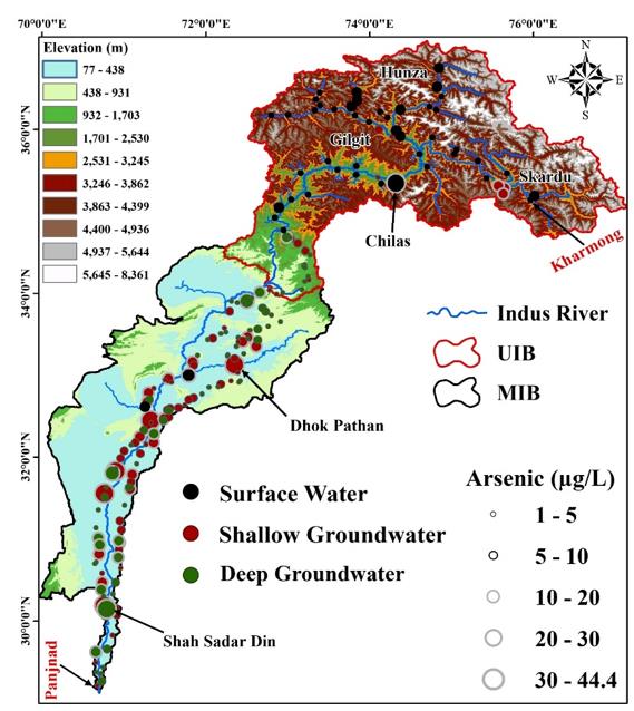 上述研究成果以“Characterization and health risk assessment of arsenic in natural waters of the Indus River Basin, Pakistan”为题,发表在《Science of The Total Environment》上,进一步支持了对亚洲水塔水质的认识。我所曾辰助理研究员为通讯作者,第一作者为已自我所毕业的巴基斯坦留学生Qaiser Faizan Ur Rehman。该研究获得中科院中巴国际合作计划(131C11KYSB2020000)和国家自然科学基金(42125104)以及国家自然科学基金委青藏高原地球系统基础科学研究中心(41988101-03)等项目的联合资助。