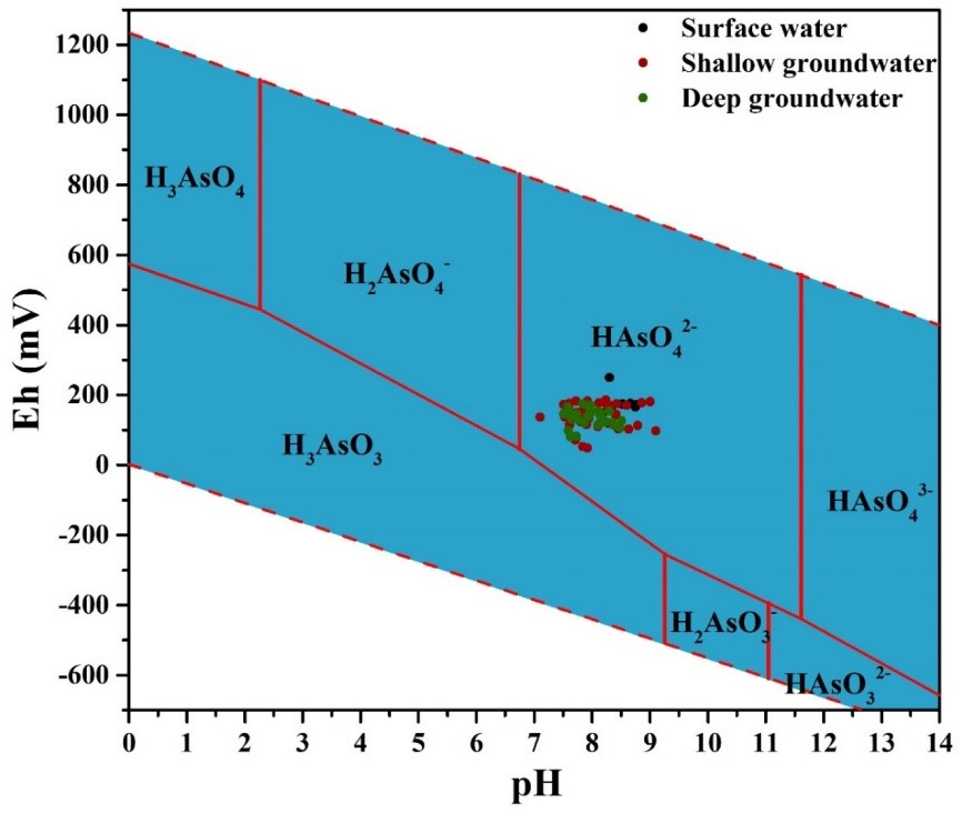 图3 不同pH和氧化还原电位下水体无机砷的形态