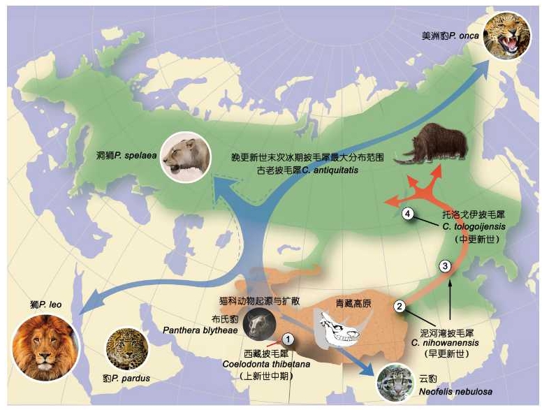 图3. 冰期动物在青藏高原的起源和扩散