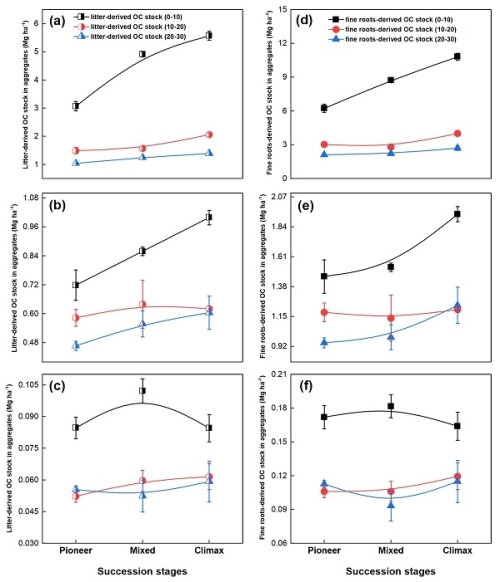 图2.长期演替下土壤团聚体中的植物衍生碳储量