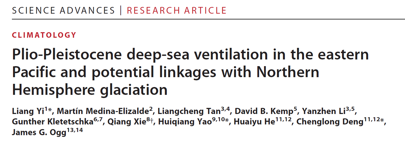 近日,《科学进展》(Science Advances)在线发表了同济大学海洋地质国家重点实验室易亮及其合作者的研究论文“Plio-Pleistocene deep-sea ventilation in the eastern Pacific and potential linkages with Northern Hemisphere glaciation”。该项研究揭示了南极水团变化在北半球冰盖发育过程中的可能作用。