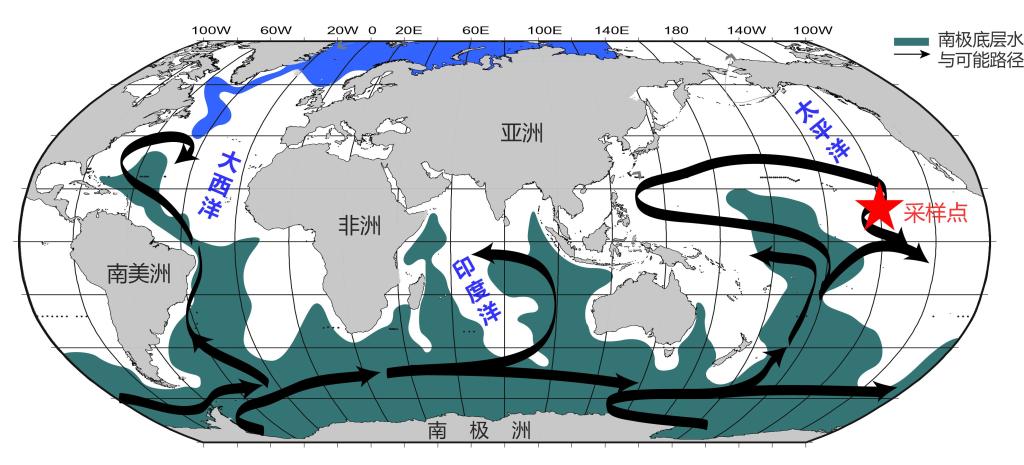 南极底层水,发源于南极,通常分布于水深通常大于~5000米的大洋深部,是影响全球大洋底层环境变化的关键之一。它不但为大洋底层水体提供了丰富的溶解氧,也在水体中封存了大量CO2,是全球气候变化的重要调节器之一。然而,对于南极底层水的长期变化及其对全球气候环境的可能影响,认识并不清晰。