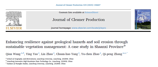 近日,我校球王会体育王倩副教授研究团队在生态学领域国际Top期刊《清洁生产杂志》(Journal of Cleaner Production)上发表了题为《地质灾害与水土流失降低植被覆盖:以陕西省为案例》(Enhancing resilience against geological hazards and soil erosion through sustainable vegetation management: A case study in Shaanxi Province)的研究性文章。王倩副教授为论文的第一作者,第二作者为2019级本科生姚盈,球王会体育为唯一署名单位。《清洁生产杂志》(Journal of Cleaner Production)是中国科学院JCR分区下环境科学与生态学领域的一区TOP期刊,2023年影响因子为11.1。