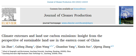 近日,我校球王会体育王倩副教授团队在国际生态学一区Top期刊《清洁生产杂志》(《Journal of Cleaner Production》)上发表了题为“极端气候对中国东部沿海地区土地利用碳排放影响:基于土地利用可持续视角”(Climate extremes and land use carbon emissions: Insight from the perspective of sustainable land use in the eastern coast of China)的研究性文章。2021级研究生赵琳为论文的第一作者,王倩副教授为通讯作者,球王会体育为唯一署名单位。《Journal of Cleaner Production》是中国科学院JCR分区下环境科学与生态学领域的一区TOP期刊,影响因子为11.1。