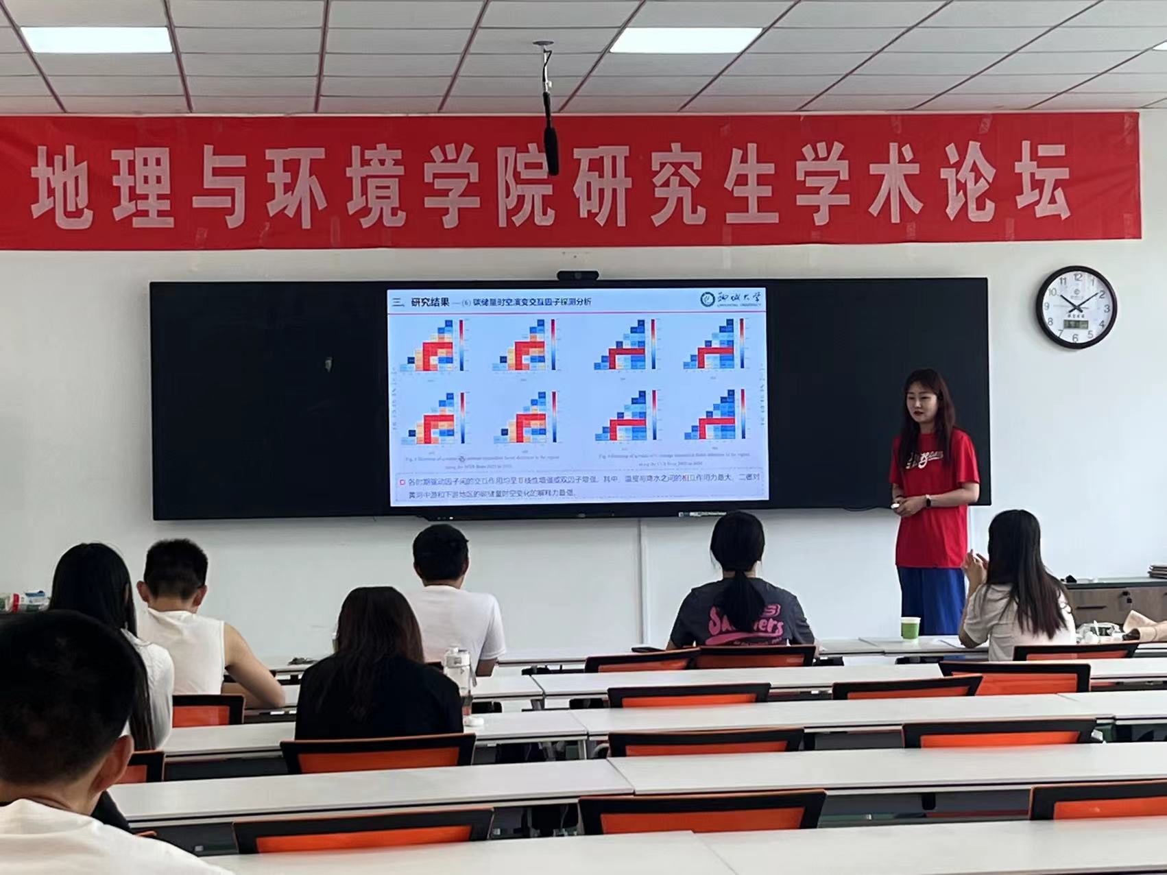 本次学术论坛设置了地理学学术学位和学科教学(地理)教育硕士专业学位两个分会场进行。报告人紧紧围绕主题汇报工作进展情况,分享交流经验收获。专家组就报告选题、研究内容与方法、研究成果与创新点等进行点评。参会同学分别就研究背景、研究方法、数据分析等进行了交流,论坛学术氛围浓厚。经过专家组评审,杨梦雅等5名同学获评优秀学术报告。