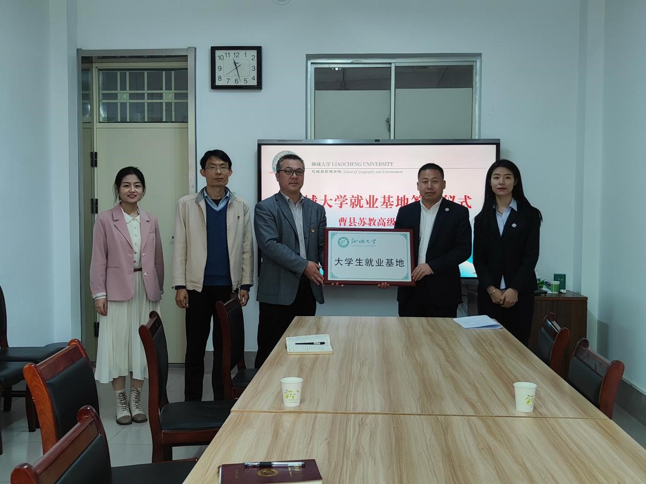 双方就人才培养、生源对接、产学研合作等相关问题进行交谈商讨,同时向曹县苏教高级中学赠予“大学生就业基地”牌匾,表示双方将充分建立发展友好合作关系,切行落实实践育人方针,密切联系、互相支持、深化合作,以促进双方发展共赢。