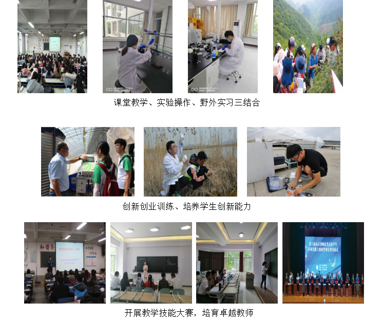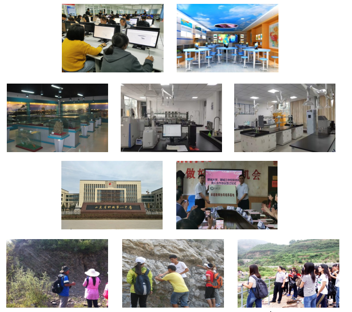 多媒体教室、现代化实验室、教育实习基地、野外实习基地