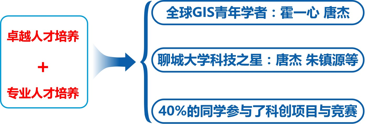 搭建了“3S大学生科技创新实验室”、省级优秀社团“聊大GIS协会”等平台,依托国家级和校级大学生科技创新项目、教师科研课题、全国大学生GIS开发竞赛等,培养学生的学习能力和动手实践能力。